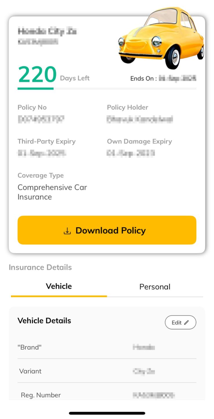 Step 2 – Select the policy for which you want to check the car insurance expiry date and you will be able to see all the policy details and how many days are left until you can renew the policy without any consequences.